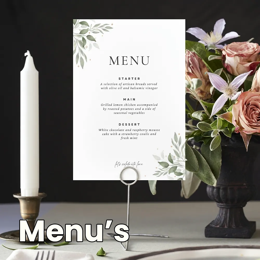 Wedding Categories Please select a category We are currently designing our range of predesigned wedding Stationery While we do this, you will be unable to purchase the designs shown below. You can use our custom printing option if you have your design already made.